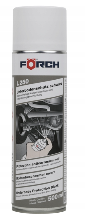 FORCH L250 to profesjonalny preparat do konserwacji podwozia w formie sprayu, który zapewnia skuteczną ochronę przed korozją, wilgocią i uszkodzeniami mechanicznymi. Jego bitumiczna formuła doskonale sprawdza się na podwoziach i nadkolach pojazdów, tworząc trwałą i elastyczną warstwę ochronną. Produkt nie nadaje się do lakierowania, co podkreśla jego specjalistyczne zastosowanie.