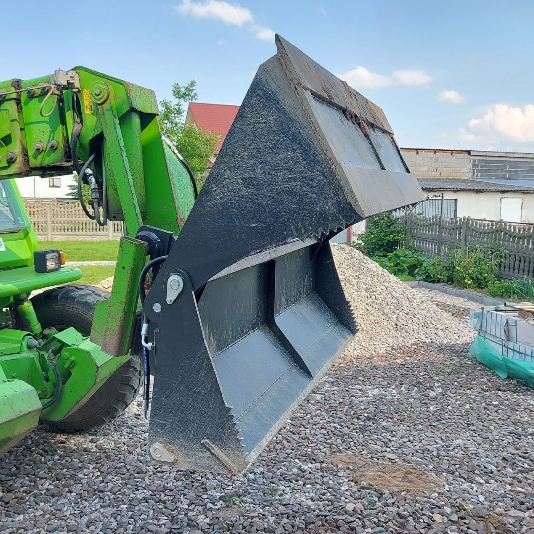 Ten model łączy w sobie kilka funkcji – może pełnić rolę klasycznej łyżki do załadunku i rozładunku materiałów sypkich, działać jako czerpak, równiarka czy spychacz. To idealne rozwiązanie dla gospodarstw rolnych, firm komunalnych czy budowlanych, które potrzebują jednego uniwersalnego narzędzia zamiast wielu osobnych akcesoriów.