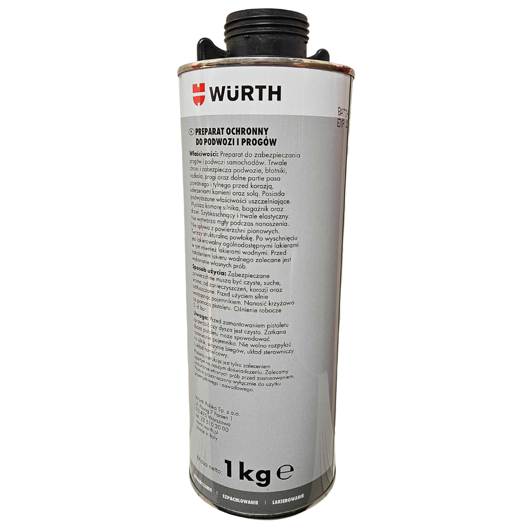 Würth Baranek Preparat ochronny do podwozi to niezawodny towarzysz Twojego samochodu, zapewniający mu solidną ochronę przed uderzeniami, otarciami oraz korozją. Ten kompaktowy i wytrzymały produkt doskonale sprawdzi się zarówno podczas codziennych przejażdżek po mieście, jak i w trudniejszych warunkach terenowych.