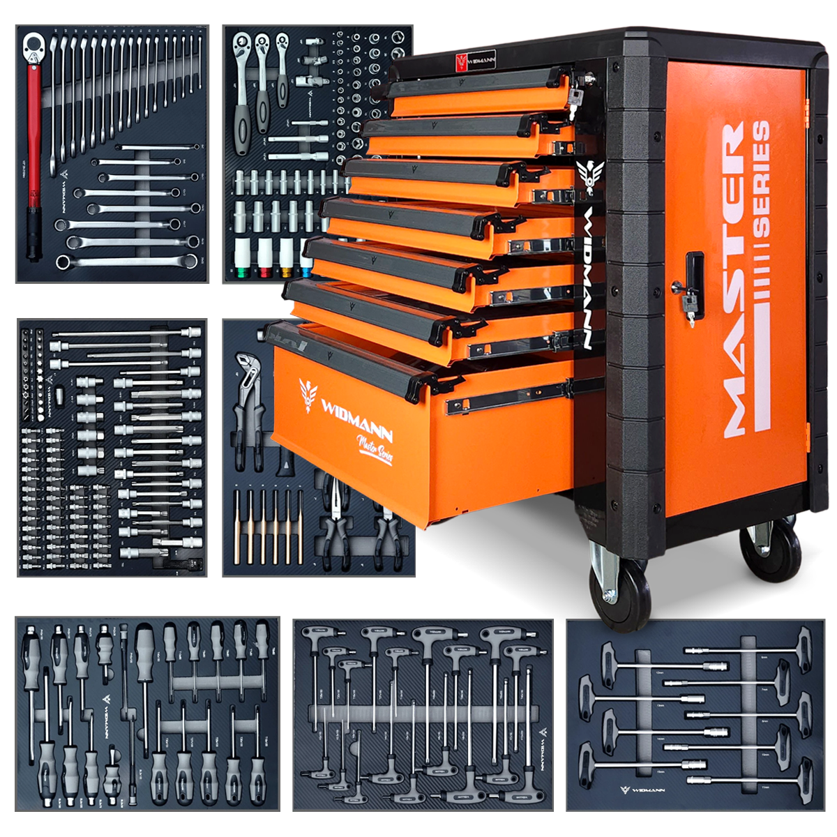 Szafka Widmann Master Series to kompleksowy zestaw narzędzi dla każdego warsztatu. Zawiera wszystkie niezbędne klucze, nasadki, bity, śrubokręty i narzędzia ręczne – idealna do profesjonalnego i domowego użytku.