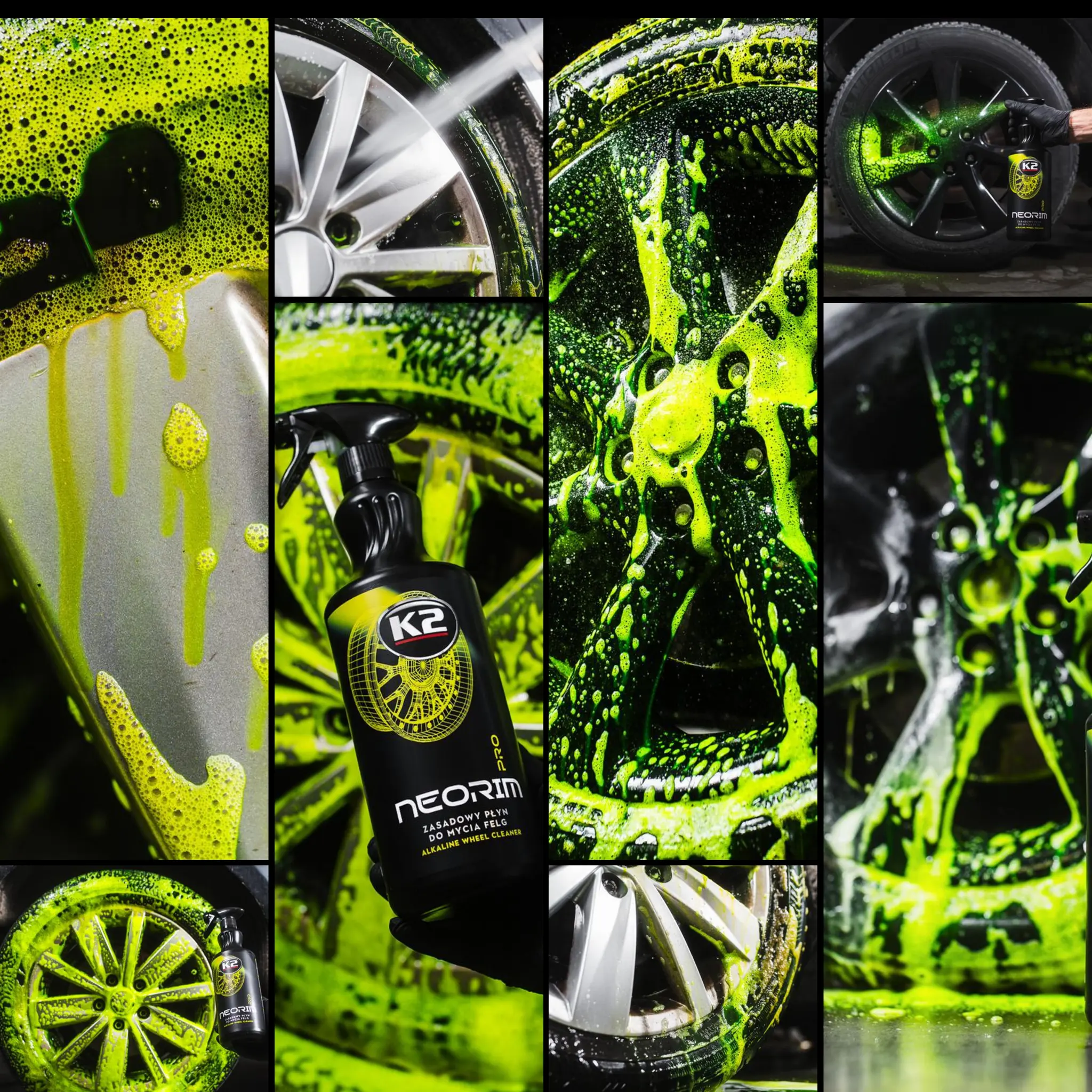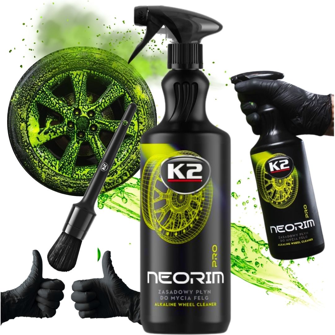 - K2 Neorim PRO 1L – Neonowy płyn do mycia felg i opon (zielony) Bezkompromisowa czystość dzięki zasadowej, bezkwasowej formule. Gęsta, neonowo-zielona piana skutecznie rozpuszcza brud, pył hamulcowy i osady drogowe. Bezpieczny dla lakieru, felg i nadkoli. Nie cuchnie – pachnie przyjemnie.