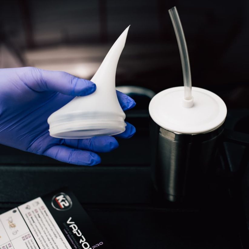 K2 Vapron to rewolucyjna metoda regeneracji reflektorów bez konieczności ich demontażu. Zestaw działa na zasadzie odbudowy przezroczystej warstwy poliwęglanowej, stosowanej do budowy kloszy lamp. Dzięki precyzyjnemu naniesieniu płynnej powłoki poliwęglanowej, zniszczona powierzchnia odbudowuje swoją strukturę, usuwając zarysowania, pożółknięcia i matowienia. Zestaw jest idealny do renowacji kloszy z poliwęglanu, zapewniając im pierwotny, atrakcyjny wygląd. Regeneracja za pomocą K2 Vapron to najskuteczniejsza metoda odnowy reflektorów, a dodatkowo zestaw jest wyposażony w elementy ułatwiające aplikację, takie jak specjalny kubek do podgrzewania płynu czy elastyczny wężyk do trudniej dostępnych miejsc.