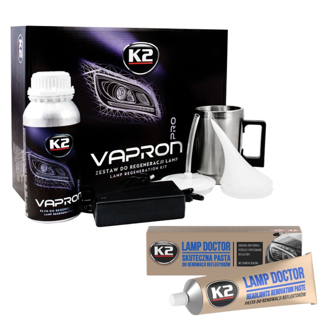 Zestawy K2 Vapron i K2 Lamp Doctor to kompleksowe rozwiązanie, które przywróci Twoim reflektorom oryginalny wygląd i poprawi ich funkcjonalność. Niezależnie od stopnia zniszczenia, produkty te zapewnią Ci profesjonalne efekty regeneracji, zwiększając bezpieczeństwo na drodze.